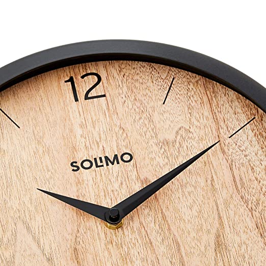 Amazon Brand – Solimo 12 inch Plastic & Glass Wall Clock – Paramount Paneling (Silent Movement, Black Frame)