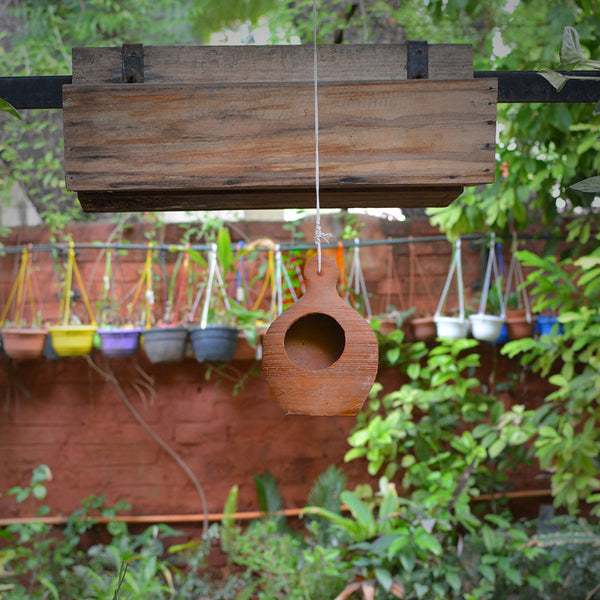 Descriptio : his ha pai ed terracotta birdhouse or pot for ha i pla s is made by rural artisa ! Add a dash of colour to your home decor with this absolutely gorgeous decorative piece. This decor gives a Rajastha cultural touch to your home! pecificatio : ize :16 x 24 CM edium : Terracotta Clay