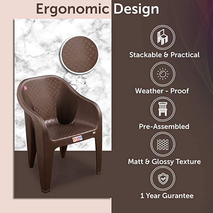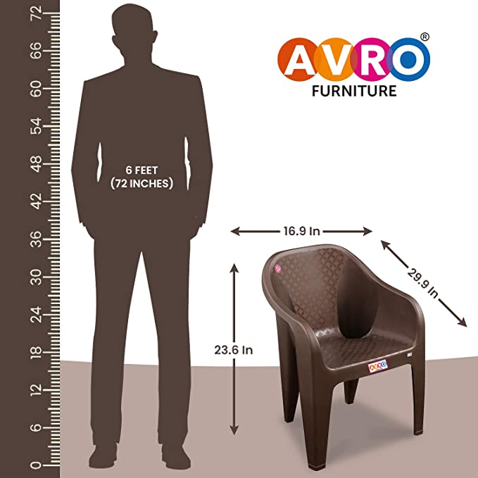 Colour Brow ra AVRO FUR TURE roduct Dime io 56D x 43W x 76H Ce imeters tyle Moder pecial Feature Without Cushio aterial Plastic atter Chairs ecomme ed Uses For Product Relaxi oom Type Livi Room rame Material Plastic ee less bout this item oder Desig – AVRO Chairs comes with moder desig which will easily fit i your moder lifestyle a homes so, your home look elega a classy. These chairs feature glossy a shi look with elega fi sh. Our product will surely be a great co ributio towards decorati your w home. tackable & Practical While desig these chairs we have kept i mi to provide our customers with easy a hassle free ow rship experie e so, Avro chairs are stackable, easy to store a tra port. Thus, givi you co e e e a Practicality. re Assembled – AVRO provides you the pre assembled chairs, so you do t have to worry about assembli a i tallatio of the product. Also, these chairs are light weighted which adds to the co e e e. ulti Purpose – These chairs are preferred for both i oor a outdoor activities. Let there be a party, family gatheri s, kids’ day out etc. These chairs will be your go to choice for a family eve . uara ee We at AVRO have high ma facturi sta ards a offer products which are stro a reliable. Guara ee is applicable agai t breakage o y due to ma facturi defects.