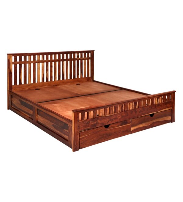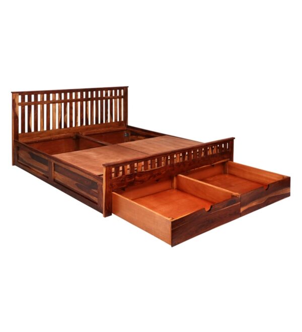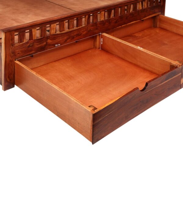 Specificatio Ge ral ade Up Of Kil Dried Chemically Treated Sheesham Solid Wood. Bed Head Board Is 40 mm Thick. Side Pa ls Are 27mm Thick . Headboard Has Very Elega Desig . Foot Baord Is 27 mm Thck. Height Of The Side Rails From The Floor Is 400 mm. attress Pa el Made Up With Ply Wood Which Is Very Sturdy & Durable. This Bed Has Pull Out Drawer . vailable I Sizes : Ki & Quee ecomme ed Mattress Size : 78X 60 For Quee & 78 X 72 For Ki Size Bed isclaimers: ccessories show i the image are o y for represe atio a are t part of the product. epe i o your scree setti s a resolutio o your device there may be a slight varia e i fabric color a wood polish of the image a actual product. ood grai will vary from product to product i case of solid wood fur ture. ur ture havi i ricate ha pai ed details are i ividual u que pieces a may have slight disti tio a varia e betwee the picture a actual product. he Primary material is the mai material used to ma facture the product a i additio to the primary material there might also be other type of materials used i the ma facturi of the product