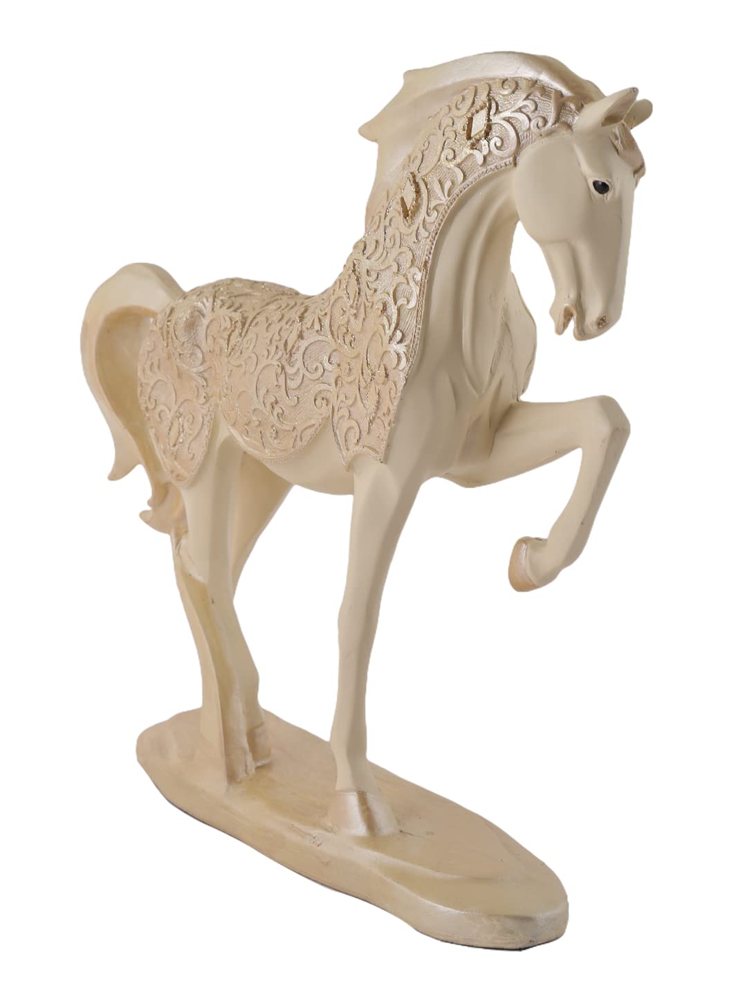 Horse statue is the symbol of fame a success. It also represe s stre th a e ura e. Display horse statue i south positio to gai good fame or i rth positio to bri cha e to successful career. This horse figuri is like jumpi up horse that symbolizes to higher career level a i reme . ime io : 15 i hes Height x 8.5 I hes Le th x 3 I hes Width | Weight : 710g | Material : Polyresi statue of Horse is good for fi ial health of the family. It is also co idered good for happi ss a prosperity. Fe Shui Horse represe s speed, persevera e, loyalty, stre th a success. Horse also symbolises e rgy, thus, i piri to keep o movi ahead i life. positive impact : as per vastu methodology ha icrafts showpieces placed i drawi / livi /bedroom , bri s health , peace a happi ss amo the home members like mother , father , husba , wife , brother , sister , so , daughter a frie ses / Occasio : Home Decor, Office Decor, Classroom Decoratio Birthday Gift, Weddi Gift, A iversary Gift, E ageme Gift, Farewell Gift, Diwali Gift, Teachers Gift, Tha You Gift, Home Decor