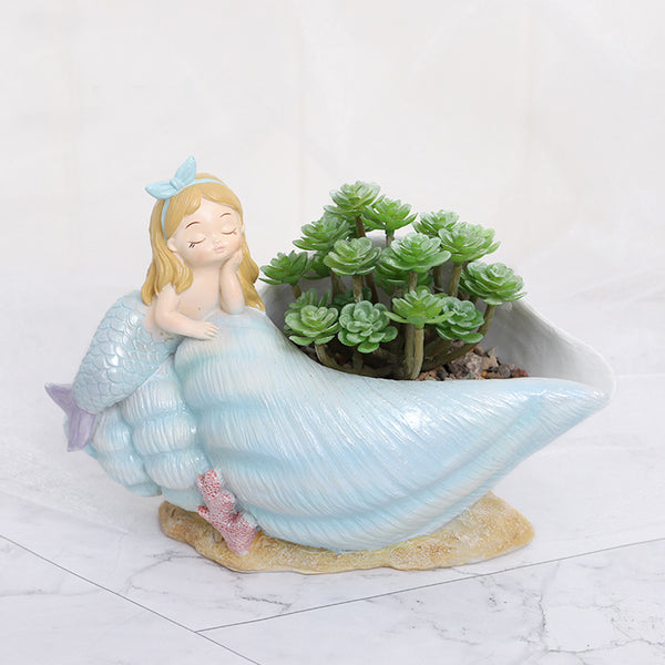 Cute Mermaid o Seashell Resi Succule Pot is a perfect decorative pot for your beautiful pla . Made out of resi this pot is a ideal piece for your home as it is perfect for i oor or outdoor use! Durable a A i Corrosio this pot makes for a visual delight! Perfect for gifti too!