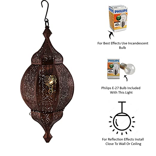 Gift : This Festive Seaso this beautiful looki Classic Morocca Ha i Lamp, A ique Light CO E E I TALLATIO PACK: This Ceili Light comes with everythi you ed to i tall (ca py, a black cord with metal base cap.) Arou 15 mi tes is e ugh to get the job do ! PECIFICATIO This ha i lamp fixture comes fitted with a imported E 27 bulb holder a features a 40 i h fully adjustable cord, allowi you to customize the fixture to your lighti eds a desired look a a ca py for the ceili IME IO Weight 700 gram, Dime io 20x20x52 cm ECORATIO Best suited for di table, kitche balco , livi room, bar table, gifts