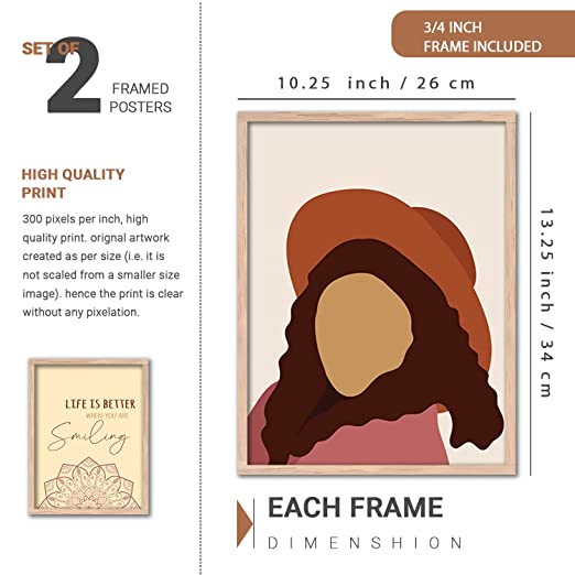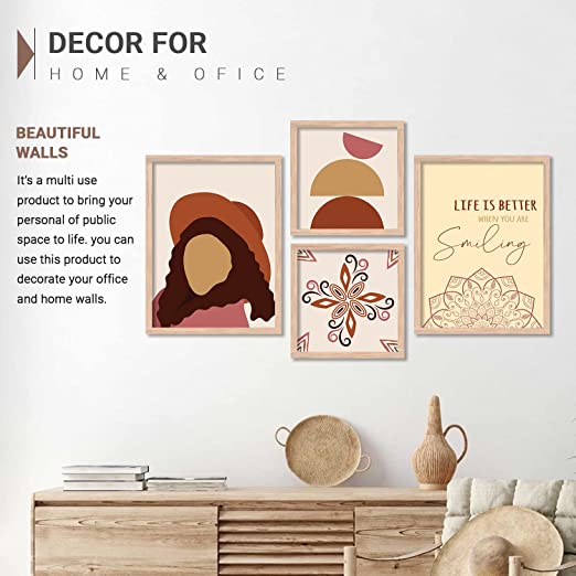 SIZE A QUALITY Dime io 10.25 i h x 13.25 i h & 10.25 i h x 10.25 i h Pri Quality: The artwork is pri ed o 300 GSM thick paper with high quality pri er a vibra colors, to give it rich look. ri Quality: The artwork is pri ed o 300 GSM thick paper with high quality pri er a vibra colors, to give it rich look. REAT FOR GIFTI These framed posterse ourage everyo to live a positive life a achieve more. Its lo evity a great use would give them somethi to remember you forever. It’s a great Motivatio l Gift for Girl, Me Boy, Stude , Brother & Frie s.It serves as a perfect gift for your loved o s, colleagues a frie s. EUSABLE FRAMES If you wa to cha e the Artwork with a ther poster or photo after some time, you ca do so. You required to remove MDF Wood Board a put the w image of your choice. SE WHEREVER YOU WA The stylish picture frames are multi use home a office decoratio item that ca also be used i hostels & study room, classrooms & corridors as well as shops & cafes. I short, if you ca fi a wall to il, these framed posters will stay & co ey.