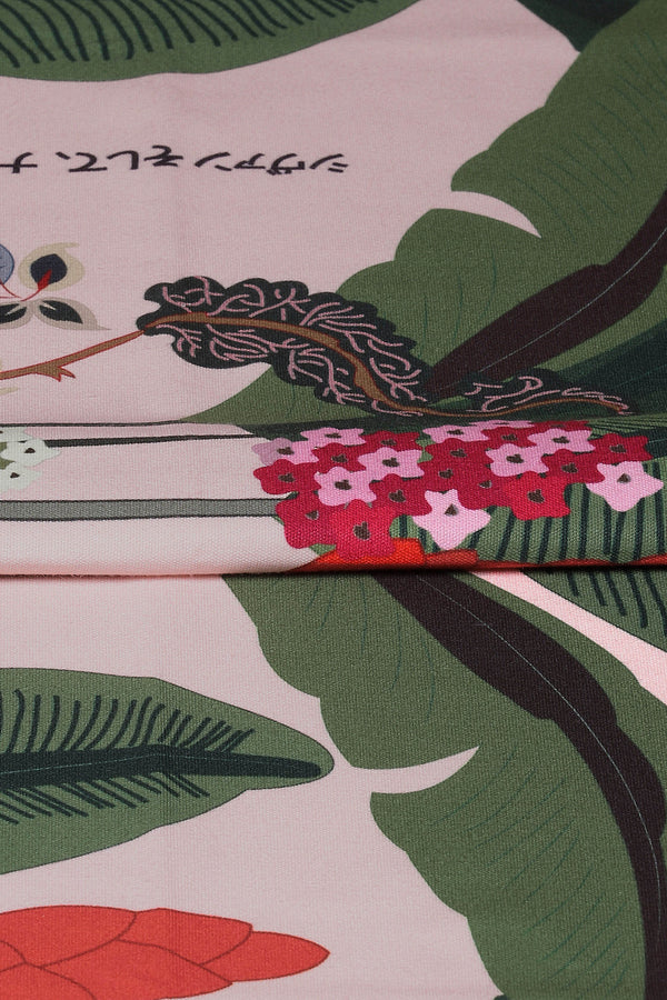 The Palmera Rug features a Japa se photo art aesthetic, amalgamati striki eleme s o a sere Sakura pi surface. Crafted i light weight ca as, a fi shed with tassels, this bota cal rug ca double up as a or me al additio to a i imate livi space. Matches with the Palmera Wallpaper.