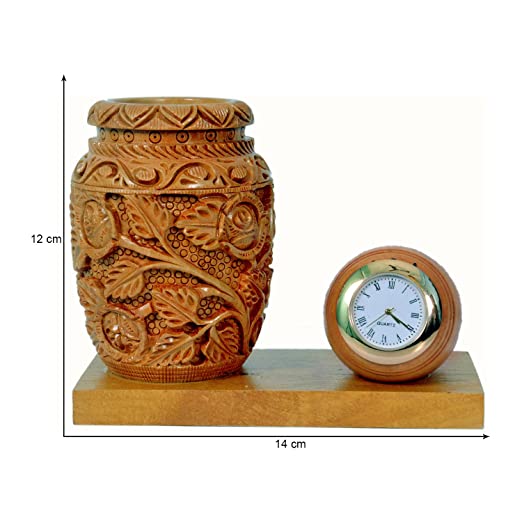Be the first to review “Pen Stand for Study Table – Handcarved Wooden Floral Vase Design with Analog Table Clock Pencil Holder Office Desk Decor – Natural” Cancel reply
