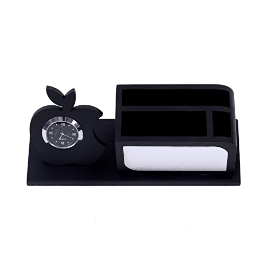 Be the first to review “Shivom Crafts Wooden Desk Organizer with Clock, Pen Stand, Mobile Phone Holder, Card Holder with 3 Compartments for Home and Office – Customized, Personalized Gift, Get Name Printed (Black and Silver)”