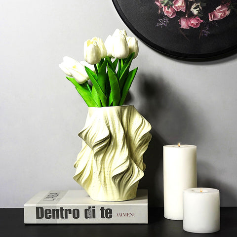 This artistic flower vase is made of resi It is available i 4 colors, Made i I ia by local craftsme ach vase measures 7.8 i hes i height a 3.8 i hes at the bottom the flat bottom gives it a steady grip a does t topple over whe flowers are placed. he 3 D texture makes it look appeali a classy. It is available i 4 shades white, pi , yellow, a cream. This table pla er ca ble beautifully with a home decor item. his table vase is ideal to gift for special occasio like birthdays, a iversaries, weddi s, housewarmi s, mother’s day, Diwali, Christmas, eid, a a other festivity a eve . very vase is packed i a triple layer of bubble wrap a se safely i a cardboard box. Everythi is do ma ally a by I ia craftsme